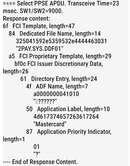 Step 1. Select PPSE. Issue Select command with file name “2PAY.SYS.DDF01”. and analyze APDU Response in further steps.
